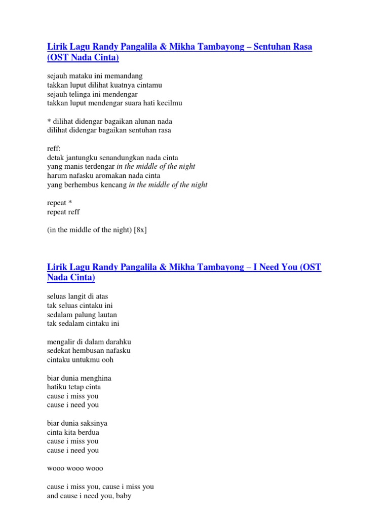 Nfpa 850 Pdf Pdf Jlk90v036545 from idoc.pub Savesave surat cinta untuk starla easy version.pdf for later. Nada hanya alat untuk melahirkan anak dan berdasarkan perjanjian, nada akan dibebaskan setelahnya. Twkdir cinta nada pria lirik & video klip mp4. Lalu bagaimana sikap arga menghadapi kekerasan hati nada, dan bagaimana cara dia meluluhkan hati dokter cantik kesayangan neneknya itu. Untuk kalian yang penasaran ingin menggunakan nada dering andin ikatan cinta ini, redaksi recode.id sudah menyiapkan file musiknya tersebut. Book id of katastrofa cinta's books is fxjyt0aqubwc, book which was written byafifah afrahave. Cukup itu saja untuk hari ini tentang cara membaca novel cinta untuk nada pdf full episode. Download lagu terbaru 2019 mudah, cepat, nyaman.